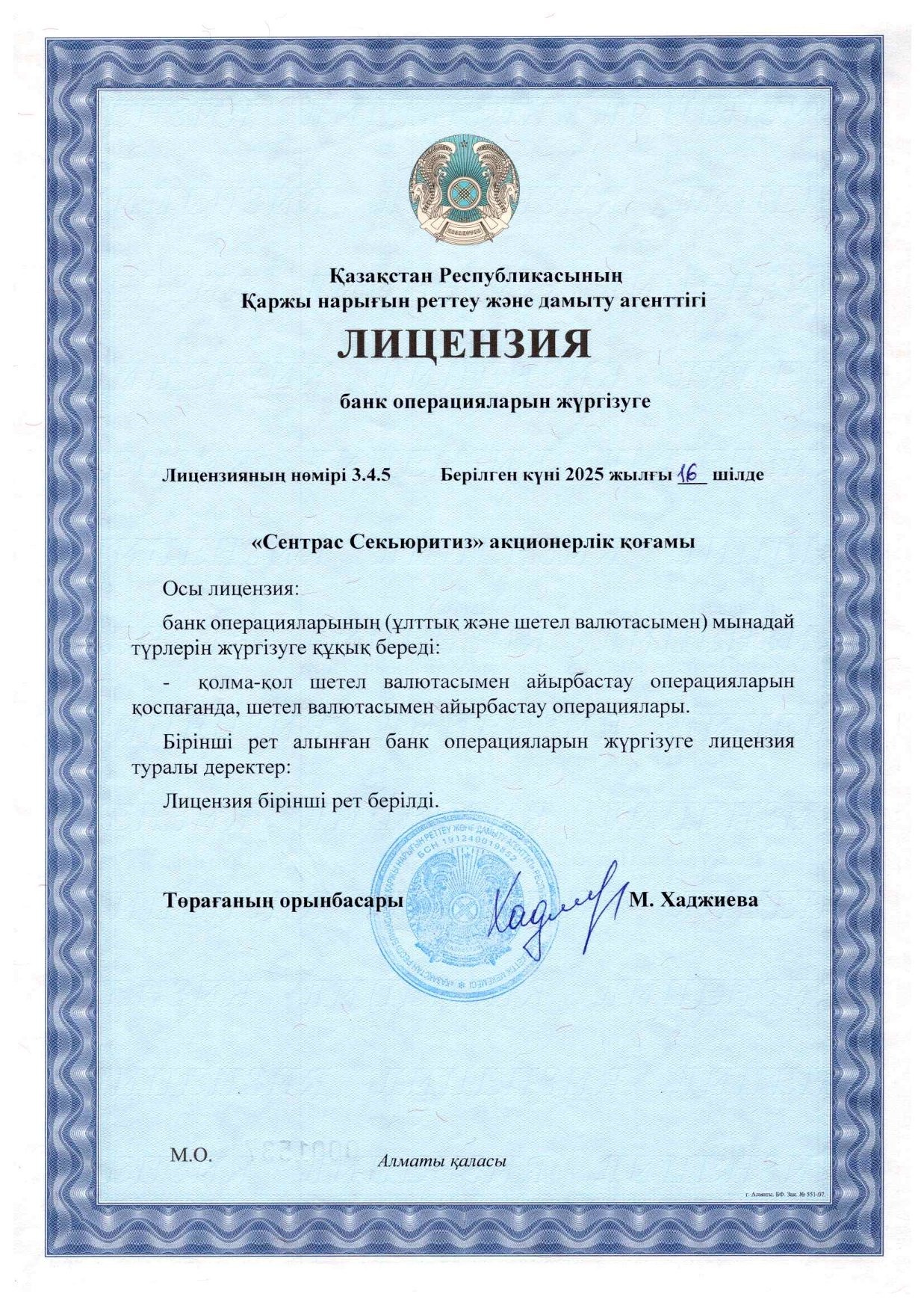 «Сентрас Секьюритиз» АҚ Қазақстанның қор нарығында өз қызметін 2004 жылдан бері жүзеге асырып келеді, ол Қазақстандағы алдыңғы қатарлы брокерлік және дилерлік компания болып табылады.